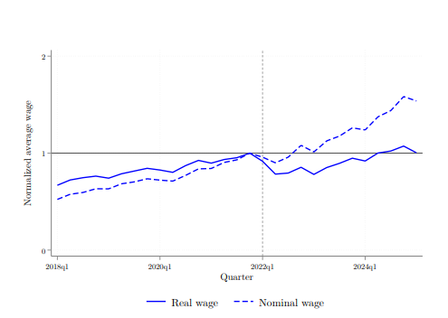 - Real wages, after an initial drop, reached and surpassed pre-war levels by 2024.